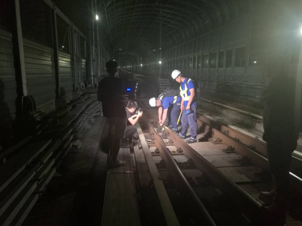 6月2日晚上11:30,當最后一班列車緩緩回到停車場后,黃甜甜提著20多斤的巡道包,來到地下10多米深的隧道里(或高架上)巡道,正式開始軌道維護檢修工作。每一次檢修作業(yè),他們都要在軌道上步行10公里以上,上行5公里,下行5公里。軌道上每個零部件,黃甜甜都要仔仔細細檢查一遍,不放過每一個扣件。他們一般兩人一組,走兩步就要彎下腰用隨身攜帶的錘子敲敲鐵軌,查看線路狀態(tài)是否正常,包括鋼軌是否有傷損,鋼軌扣件、螺栓是否松動或斷裂等。今年,黃甜甜被安排到了1號線二期軌道段。1號線二期軌道設備90%屬于高架段,相比地下軌道段更容易受外界環(huán)境影響,這就加劇了檢查與維修的工作難度。